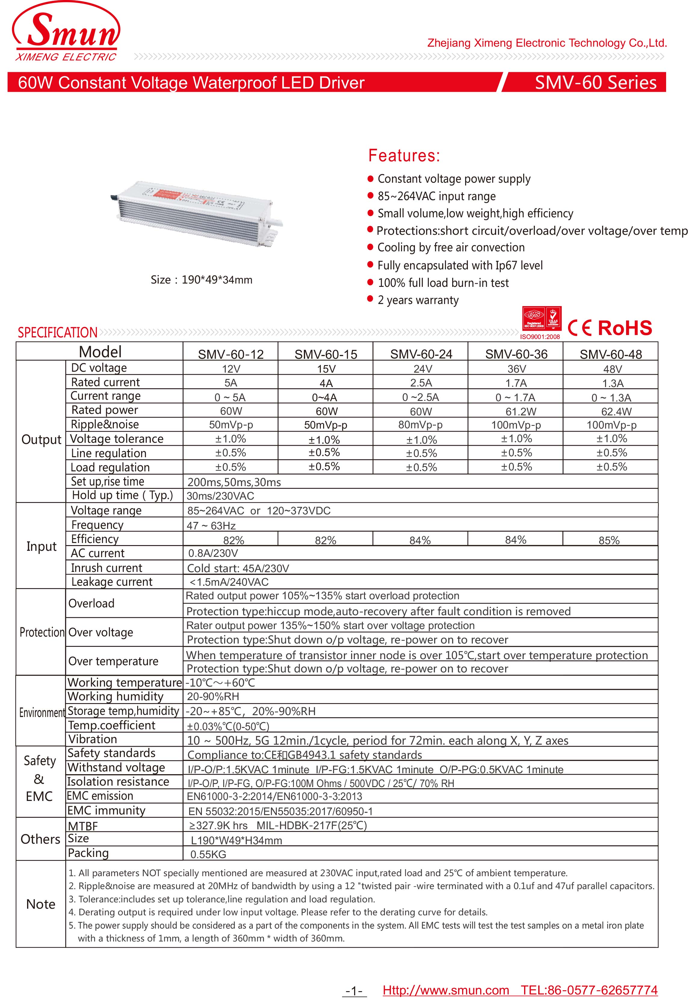 Le SMV-50 est une alimentation AC/DC industrielle de 50 W offrant l'exceptionnel pour fonctionner dans un environnement très humide, poussiéreux, huileux et à fortes vibrations. Toute la série est logée dans un boîtier en aluminium et entièrement recouverte de silicone à conduction auditive. Grâce à une conception de pointe, l'efficacité de travail jusqu'à 85%, permettant au SMV-50 de fonctionner parfaitement entre -10 et + 60 sous convection d'air libre. La conception du boîtier métallique et le niveau de protection IP67/IP65 permet à cette série de s'adapter aux applications intérieures et extérieures.